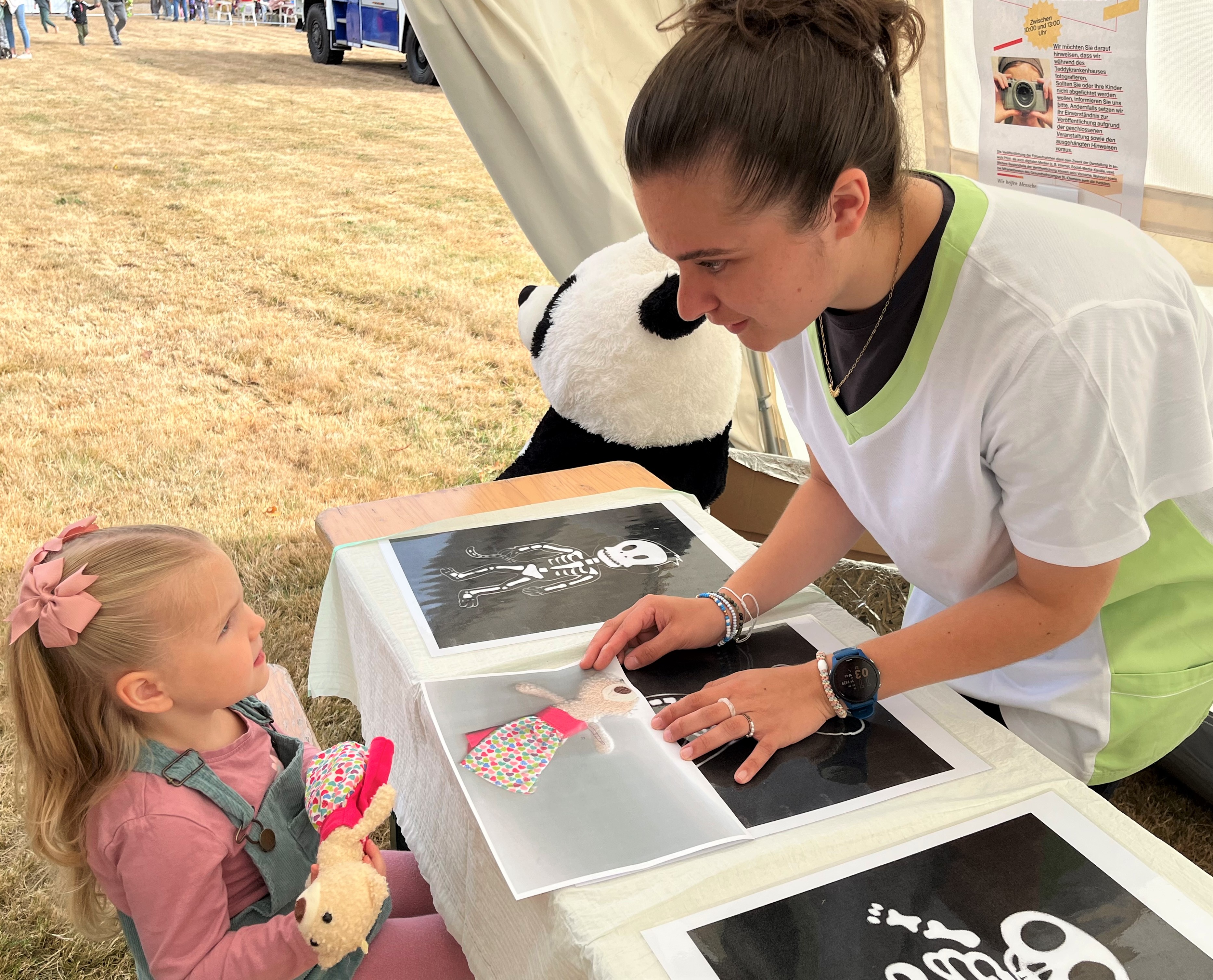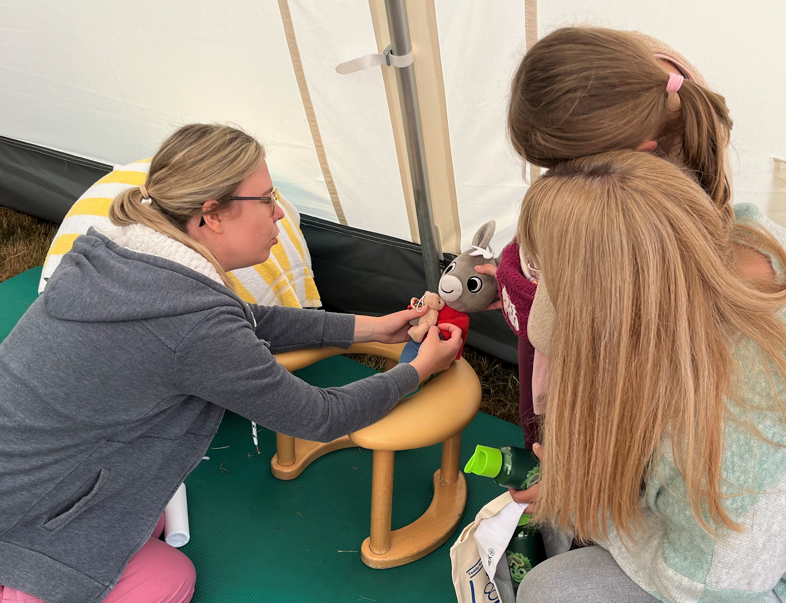 Am Donnerstag und Freitag, 28. und 29. August 2025, wurden in dem Zelt-Krankenhaus für flauschige Freunde angemeldete Kindergarten- und Grundschulgruppen empfangen. Am Samstag, 30. August 2025, standen die Zelte für die Kuschel-Patientinnen und –Patienten dann allen Kindergarten- und Grundschulkindern bei freiem Eintritt offen. Dazu gab es Programm mit Hüpfburg, Wurfspielen und Entenangeln, Popcorn und Büchertisch.